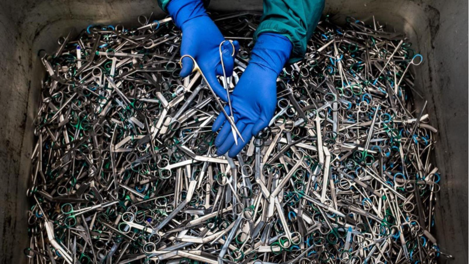 Foto Thalita Hoppe. Each year, on average ~30,000 surgical scissors are discared from a Dutch University Medical Center after a single use (ref). Reusing these scissors, would that be radical or logical?