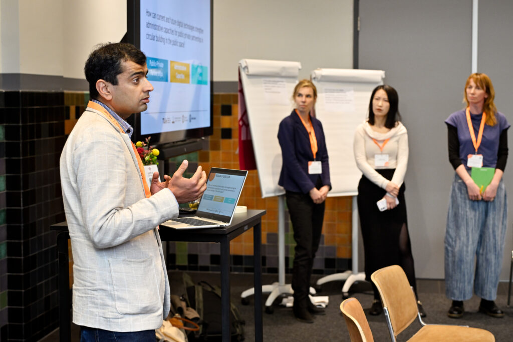 Participants explored the role of digital technologies in enabling public–private partnerships for circular public spaces. Using an interactive brownpaper format, the workshop encouraged open, collaborative dialogue. Ideas were mapped visually, helping to surface shared challenges, identify new research questions, and highlight concrete opportunities for collaboration.
